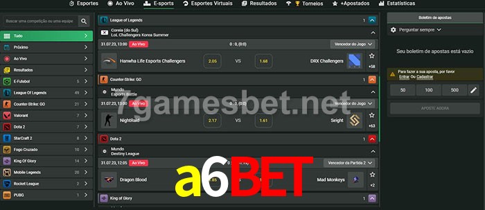 A aposta a6bet oferece aos jogadores a experiência mais conveniente de apostas em eSports!
